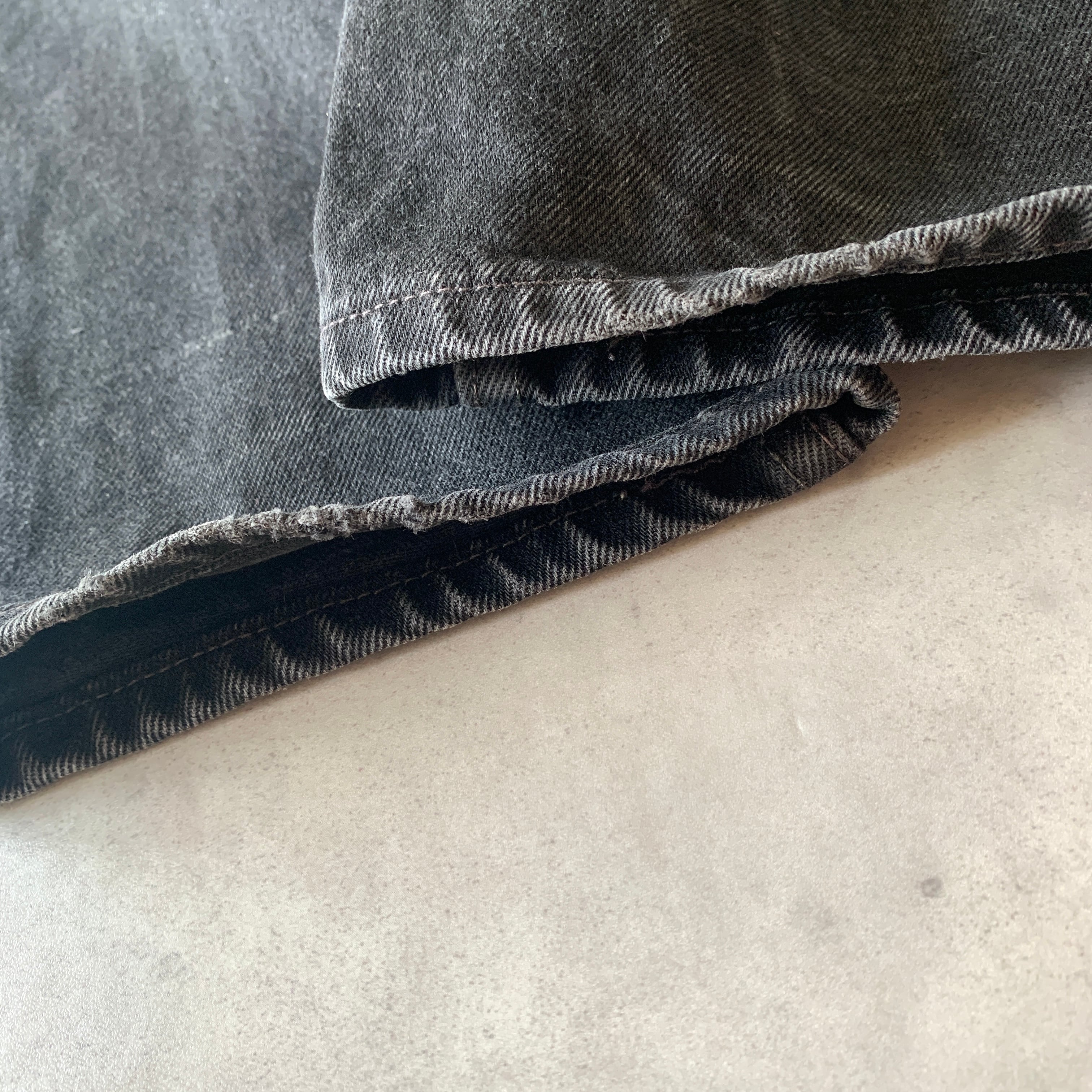 深めの股上に、腰まわりやもも付近はゆったりしたつくり。そこからやや強めのテーパードのかかる特徴のあるスタイルの「550」の99年USA製のブラックです