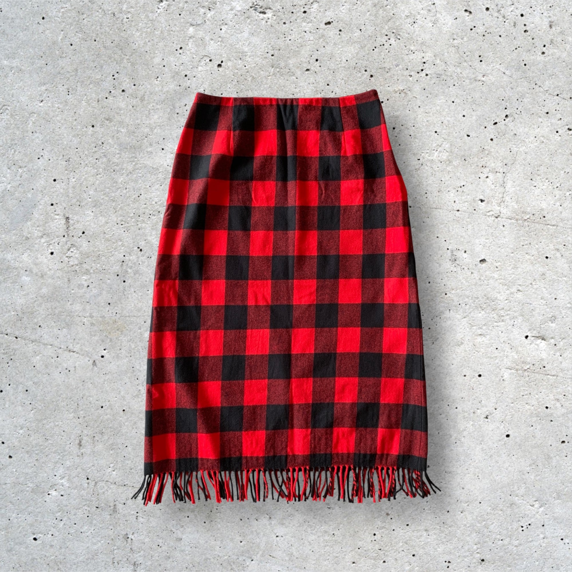 ブロックチェックウールスカート フリンジ