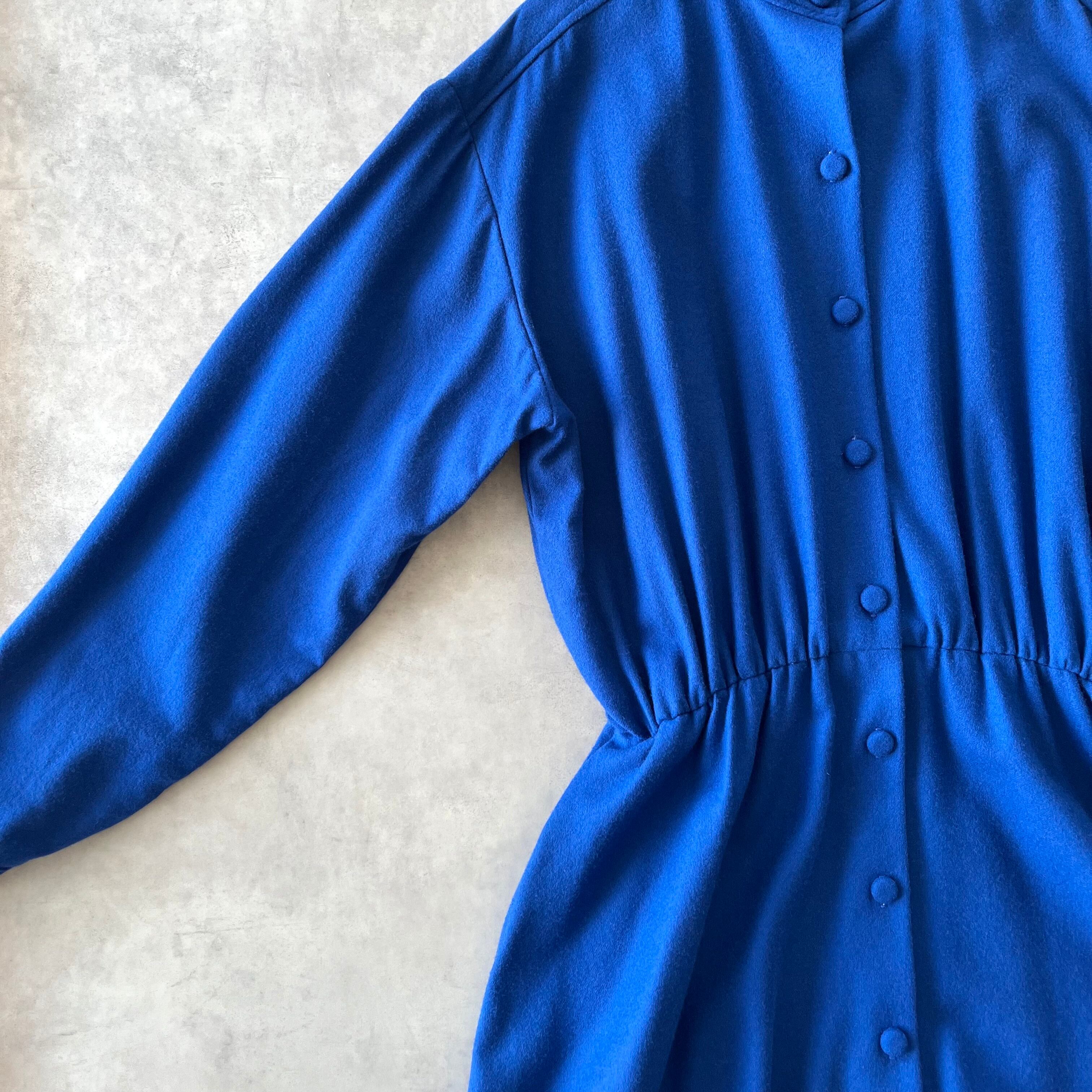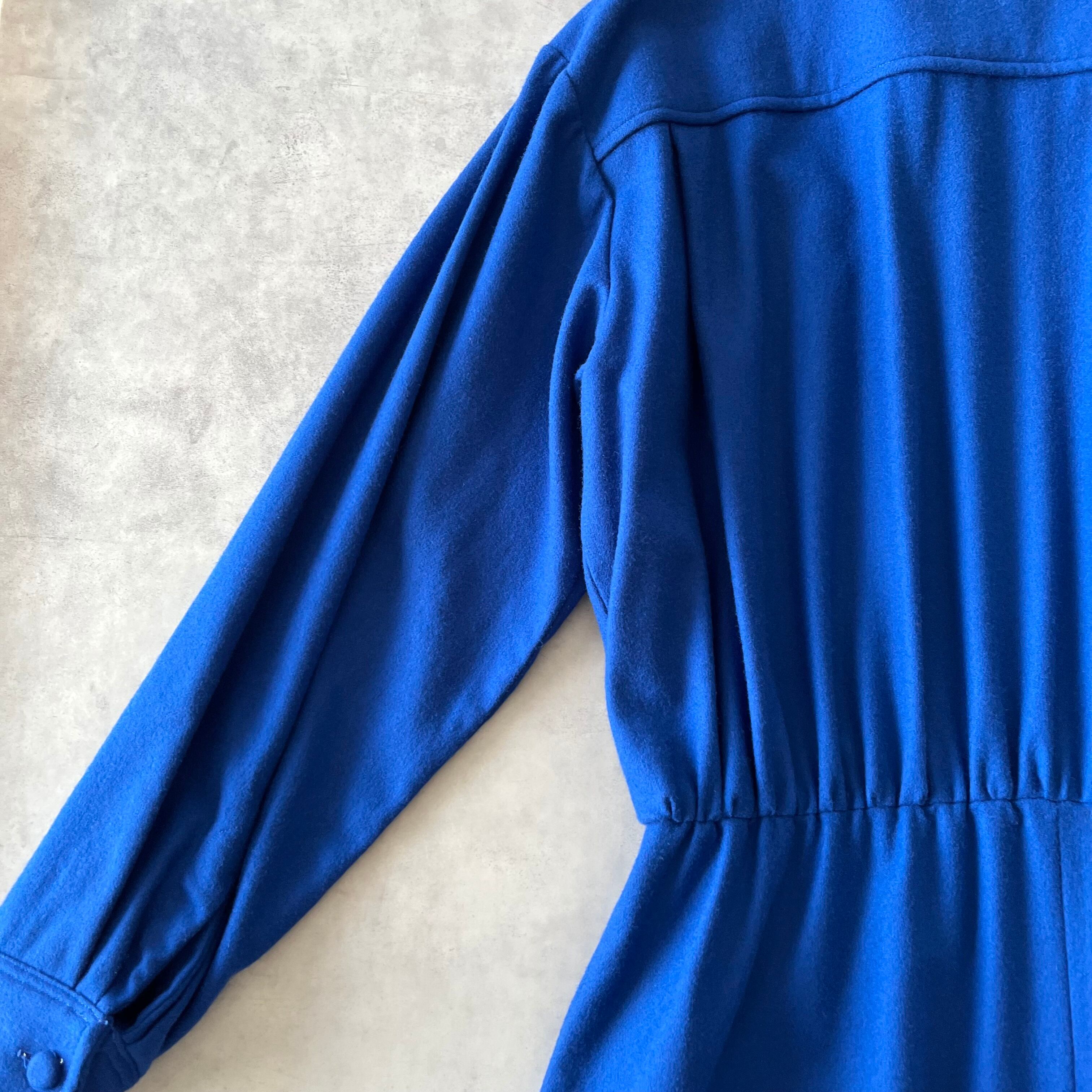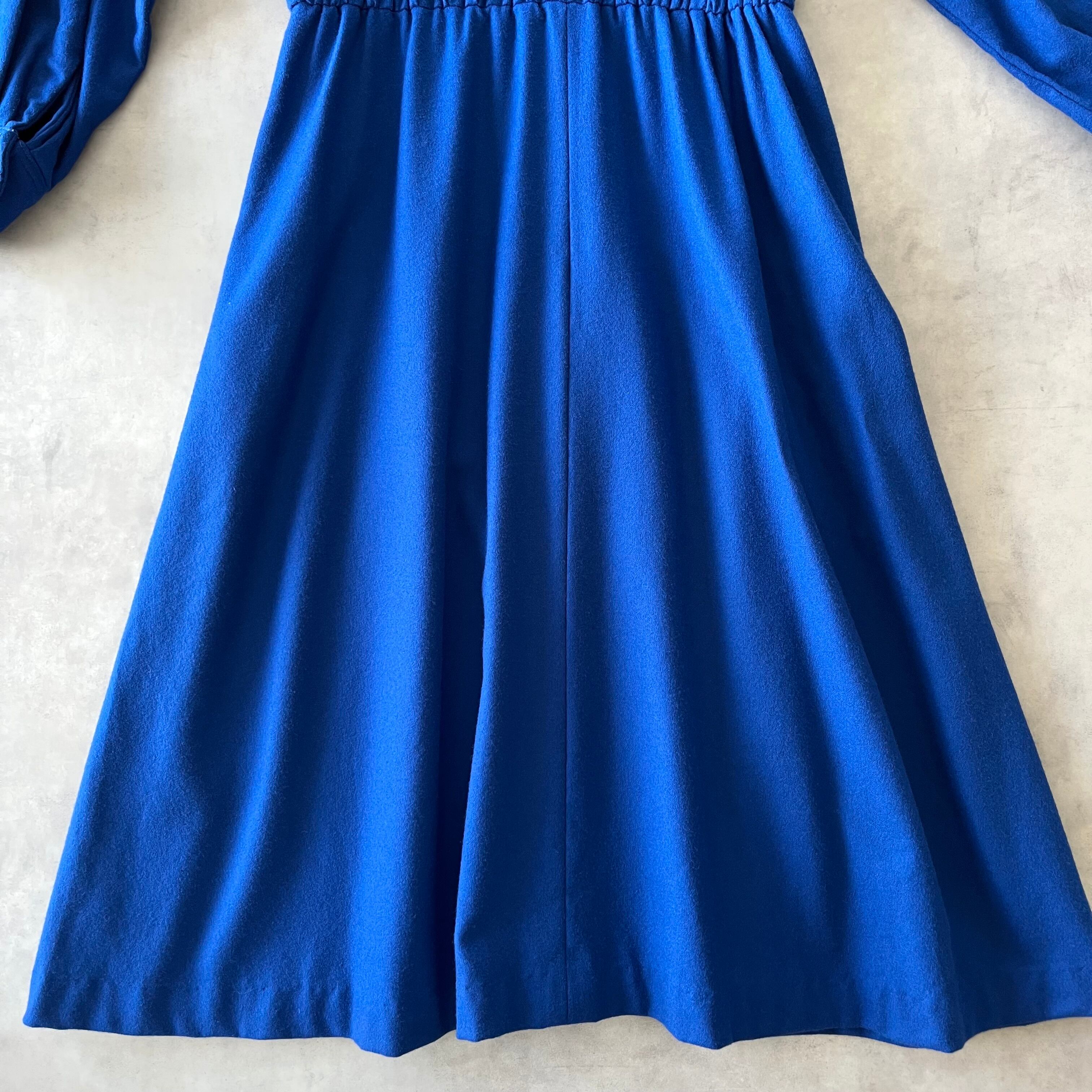 ウールワンピース きれいな青 ポケット付き