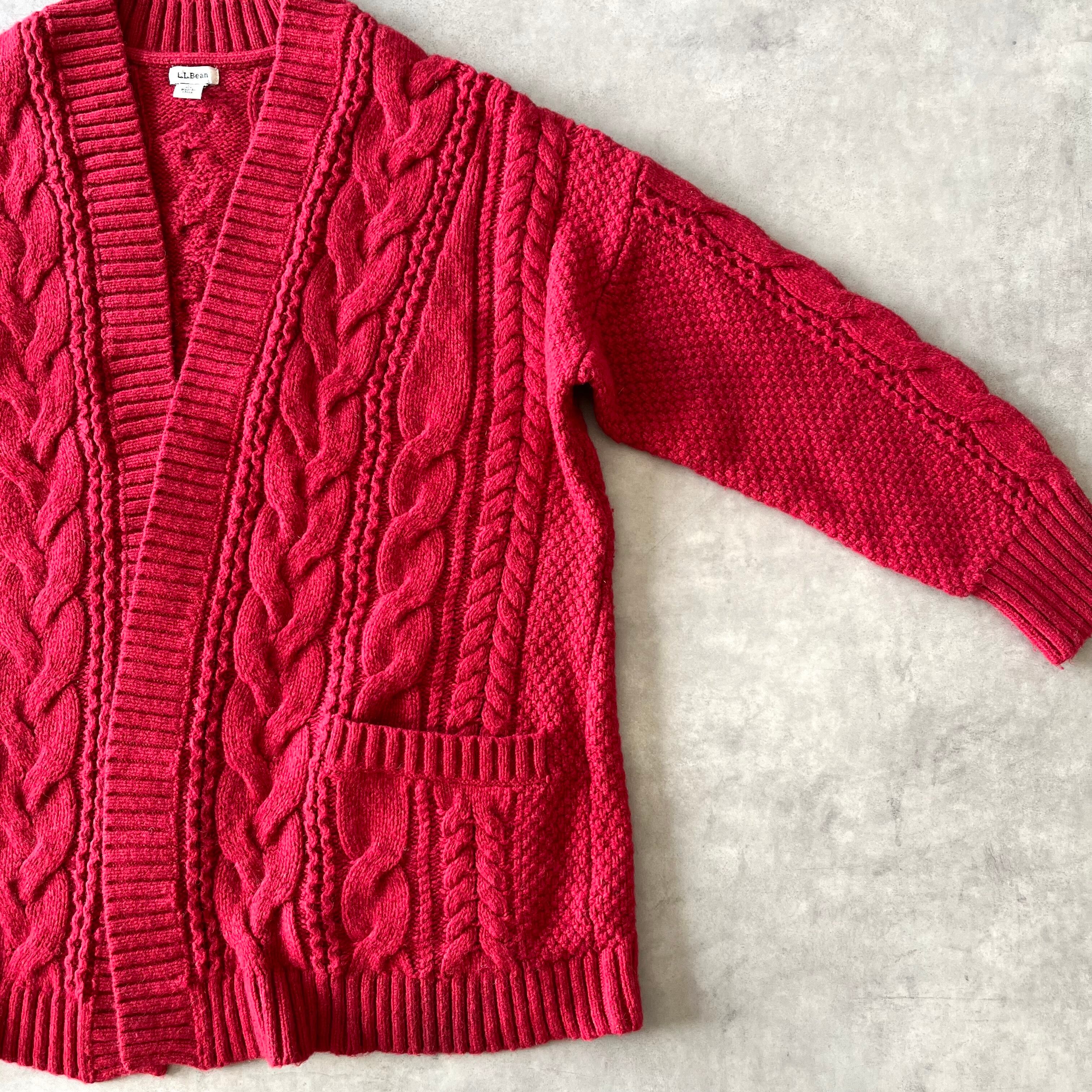 00's L.L.Bean エルエルビーン ウール ケーブルニット カーディガン