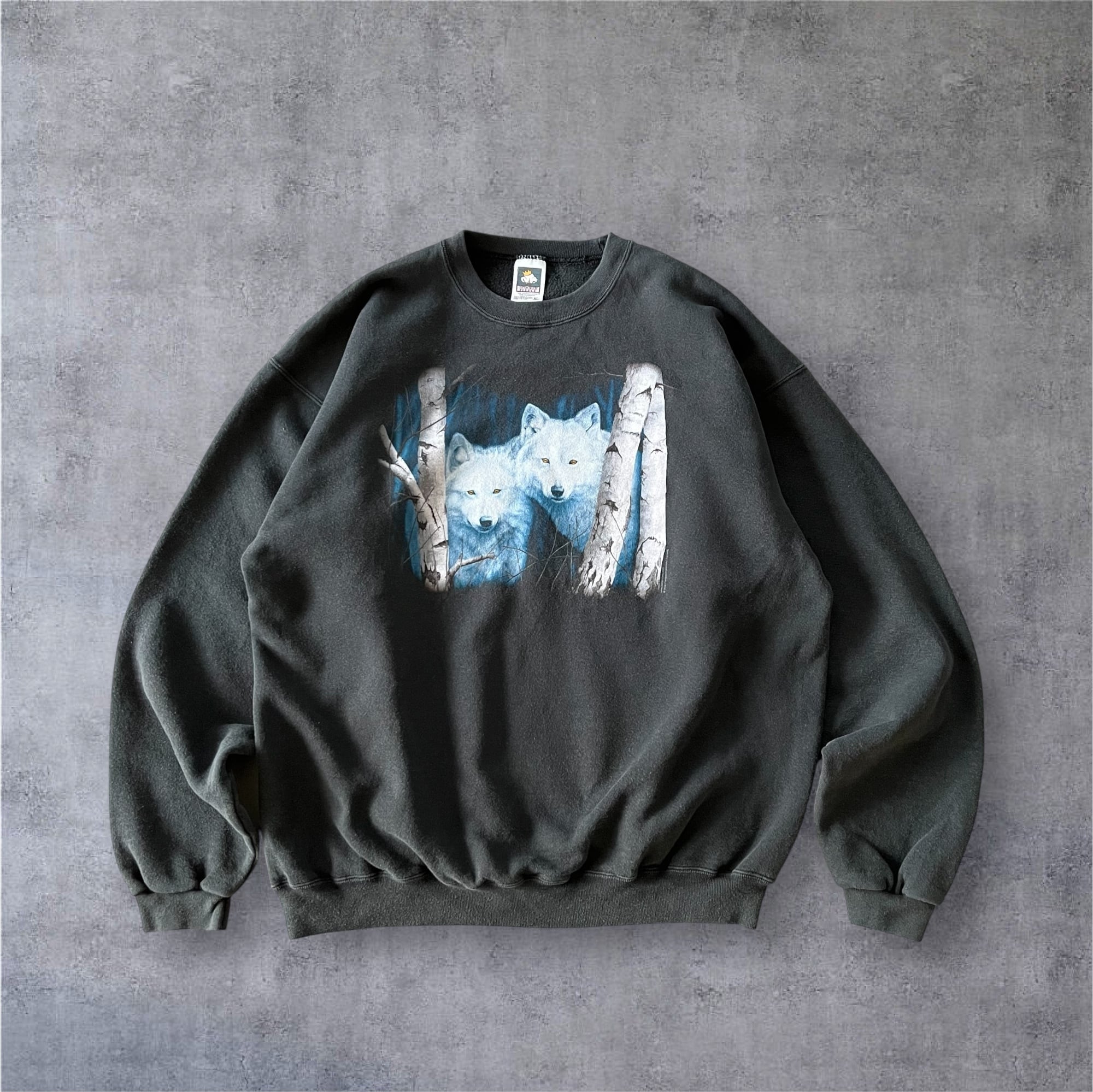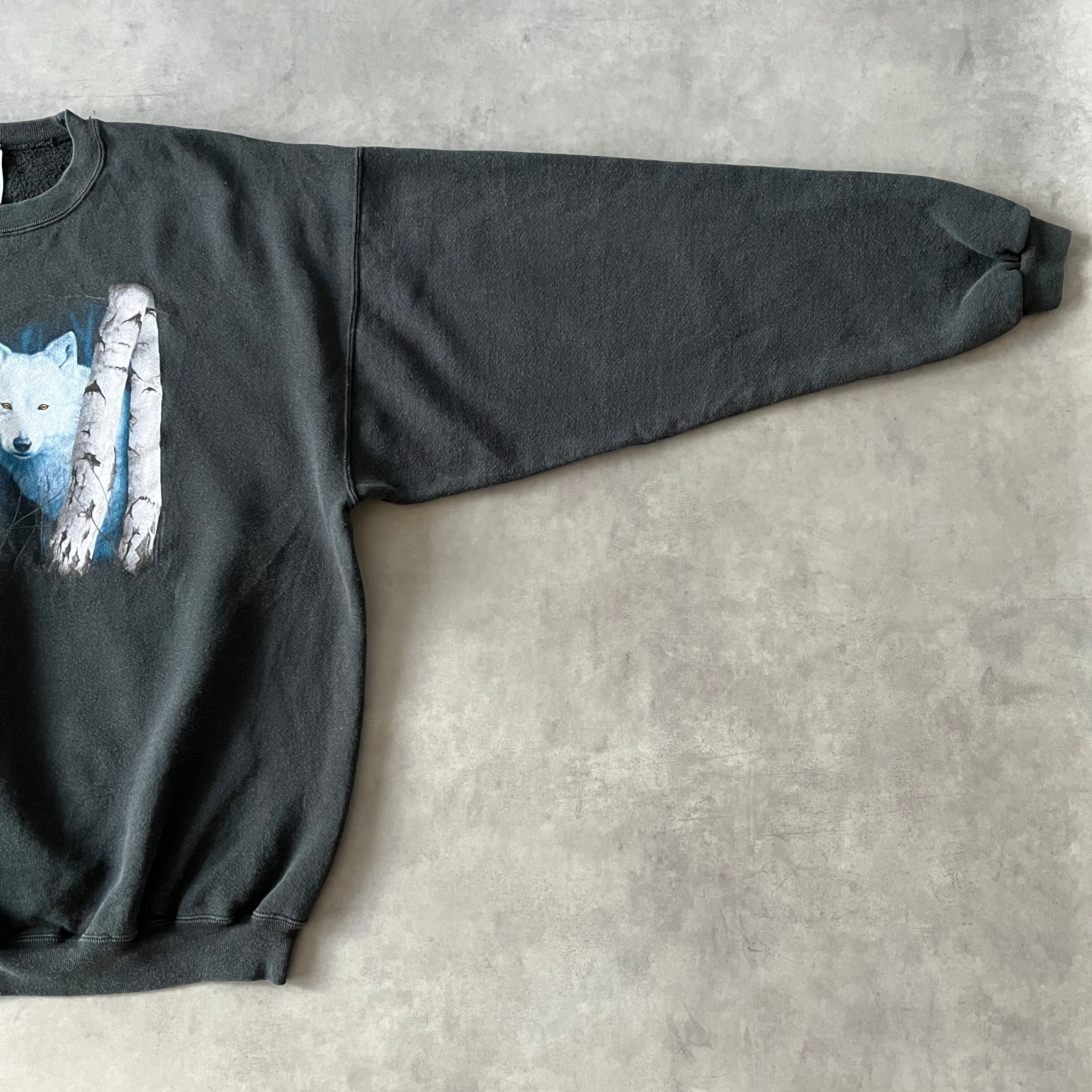 00's COTTON DELUXE スウェット フェードブラック 狼 アート
